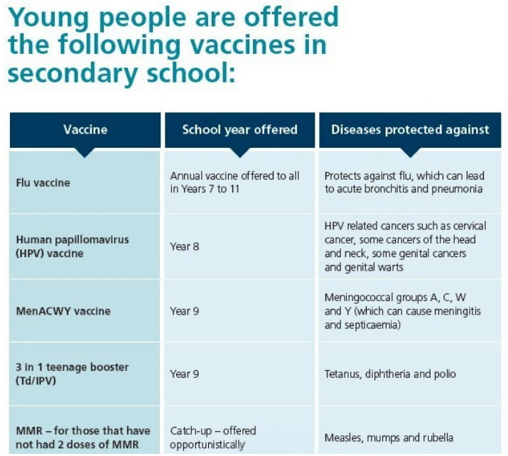 Throughout the school year the Vaccination UK team administer vaccinations here at school to those students who have consent using this link: https://humber.schoolvaccination.uk/
